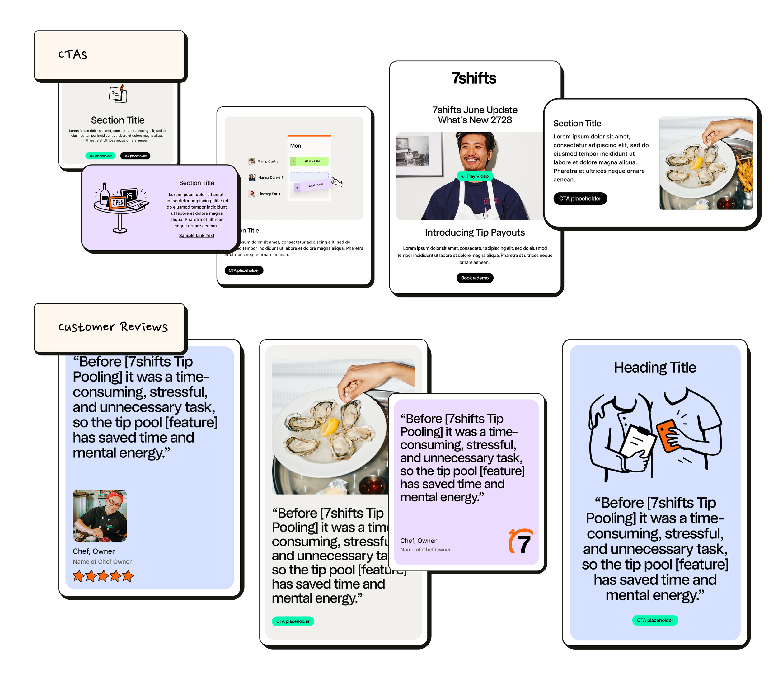 To support the launch of 7shifts' new payroll integration, I designed a bold, conversion-driven landing page that clearly communicated the value of connecting scheduling to payroll within one seamless platform.