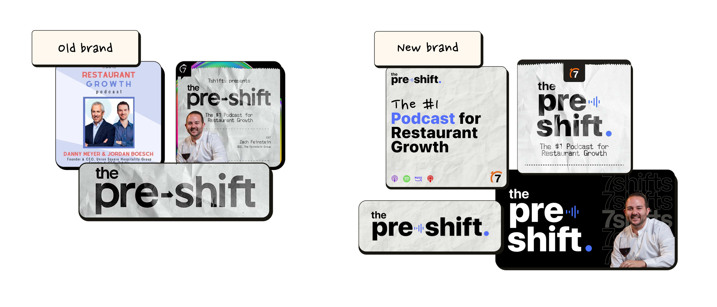 As part of the 7shifts redesign, I led the visual refresh for Preshift, the company’s hospitality-focused podcast. I introduced an updated logo, refined colour treatment, and a new design system for ongoing podcast album covers.